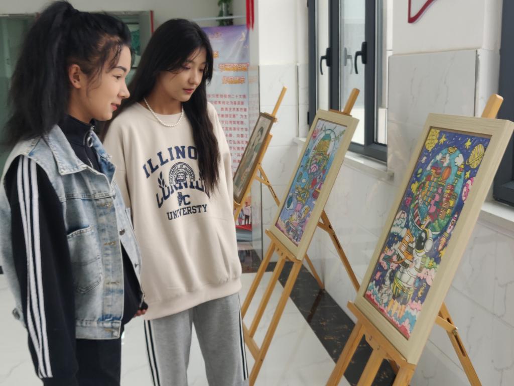 活动中,学院教育艺术系在文化长廊展示了学生以“科技创新”为主题创作的绘画作品,学生的绘画作品以科技、航天员为主要内容,通过科技元素、宇航员的形象展示了科技世界的独特魅力。通过让学生切实参与到科普日活动中,让科普融入到日常学习中,提高学生的科学素养。