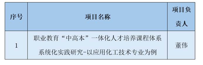 12月10日,bat365在线中国官网登录入口教师董伟主持的《职业教育“中高本”一体化人才培养课程体系系统化实践研究——以应用化工技术专业为例》成功入选自治区教育科学规划课题。