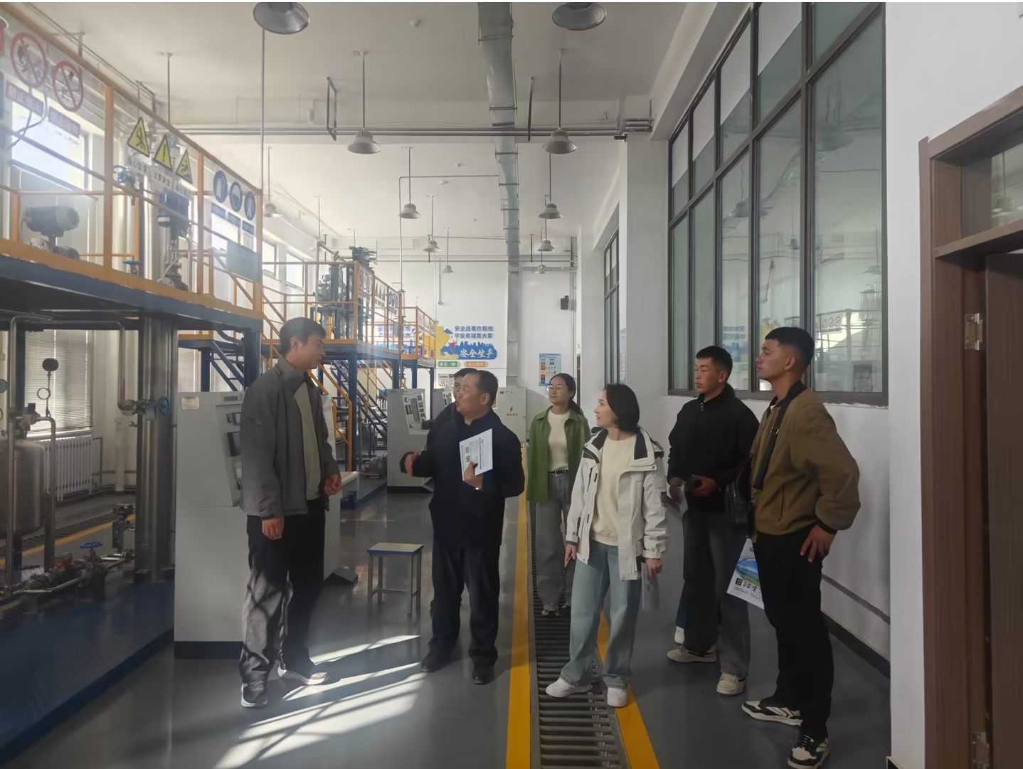 学院招生就业处教师对来访师生表示热烈欢迎,在学院教师的引导下,克州三中师生先后参观了化工实训室、机械电气实训室、教育艺术教室、新媒体产业学院等核心实训场所。参观过程中,实训教师现场演示了专业设备并讲解了实训课程与岗位需求的衔接逻辑;克州三中的学生代表近距离观察设备、询问专业相关问题,亲身感受专业技能的学习。
