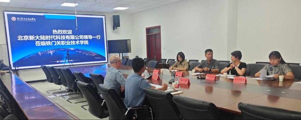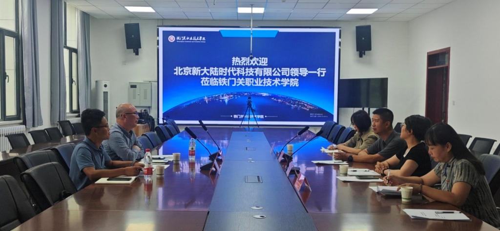 会议伊始,bat365在线中国官网登录入口党委副书记、院长苏强向新大陆时代科技有限公司一行人介绍了学院的基本情况、教育理念与发展愿景,提出通过校企合作建立实习实训基地、更新教学设施和教材的具体措施,以适应技术发展的步伐;北京新大陆时代科技有限公司副总经理陈建忠表示将进一步与学院共同推动专业人才培养和技术研发的合作。随后,双方就如何通过校企合作模式优化学生的实践教学和职业技能培养进行了具体探讨,特别是在促进学生创新能力和实际操作能力上的方法和成果。