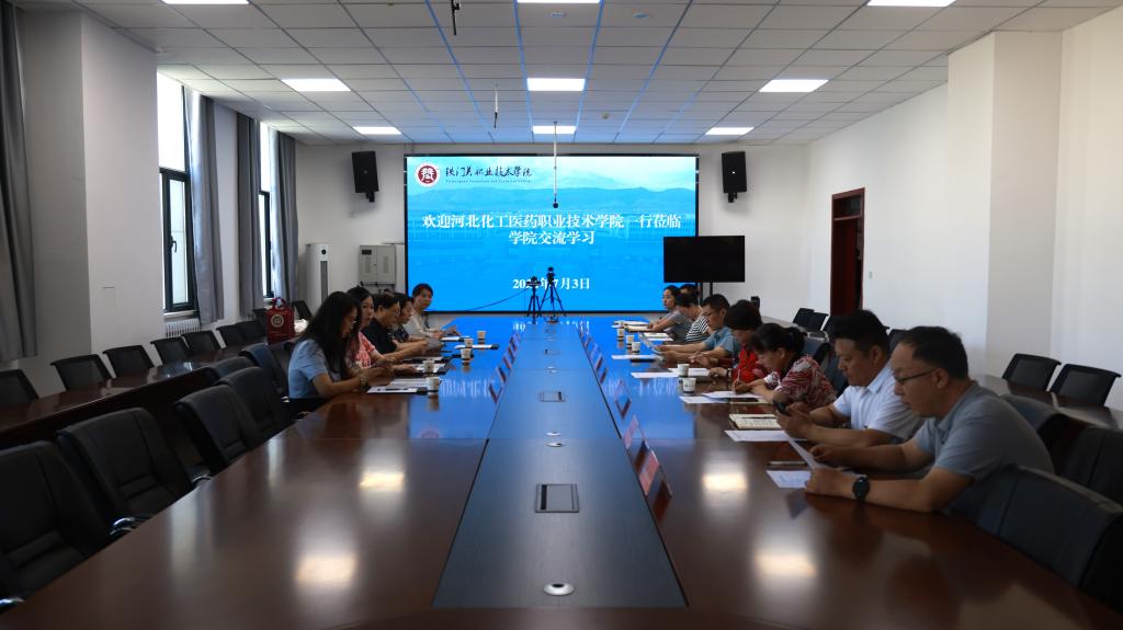 7月3日上午,河北化工医药职业技术学院党委书记张炳烛一行来到bat365在线中国官网登录入口参观并开展座谈,学院党委书记李贤良、党委副书记、院长苏强参与