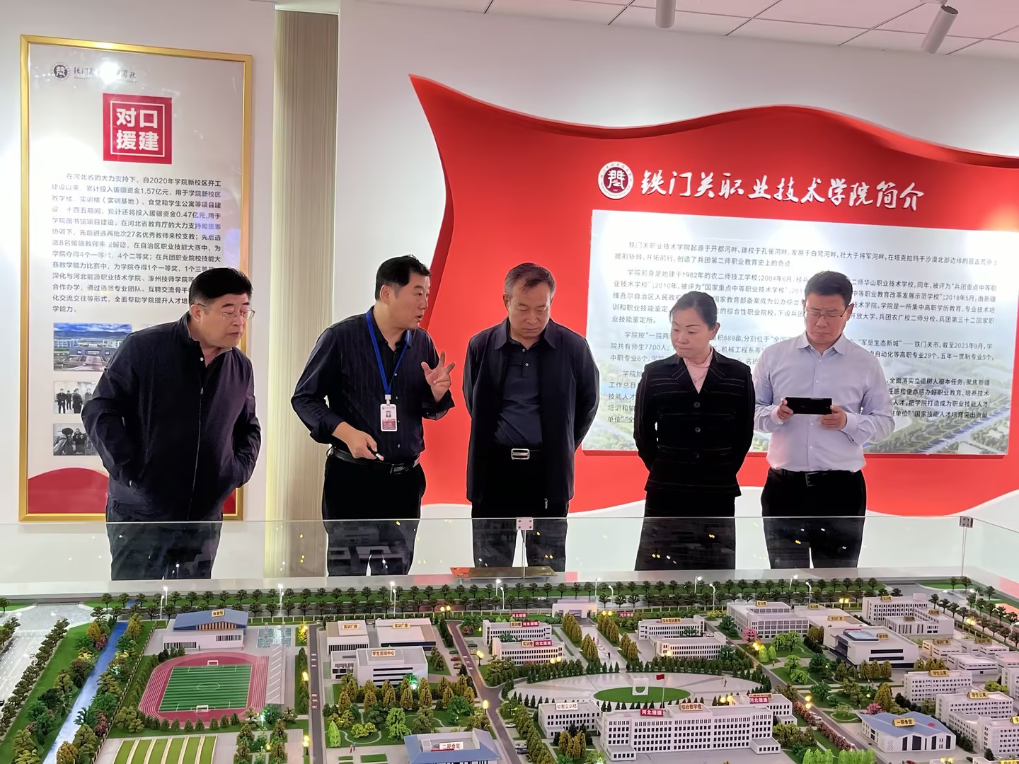 调研组一行先后参观了学院德艺楼、燕赵楼、学院展厅、新媒体产业学院及林果业展厅,实地查看了学院校容校貌、设施建设情况,孙苏维对学院规模建设、技能人才培养、招生就业、教育教学等基本情况进行了详细介绍。他表示,近年来,在河北省委、省政府大力支持下,全力推进援疆项目实施、产业合作、人才支援和交往交流,学院各项工作取得明显成效;河北援疆教师身负使命来到学院,与教师们同心共谋职业教育新发展,心往一处想、劲往一处使,为二师铁门关市职业教育发展相互交流、合作交融贡献力量。