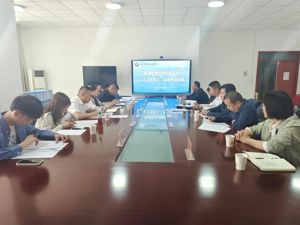 评估过程中,学院领导代表学院对新增化工总控工认定工种进行汇报,评估组了解了该工种的职业技能要求、培养方案以及学院的师资力量、教学设施等情况。随后,评估组实地考察了学院的化工实训基地,查看了实训设备、安全设施以及实训教学流程,并与师生进行了深入交流。
