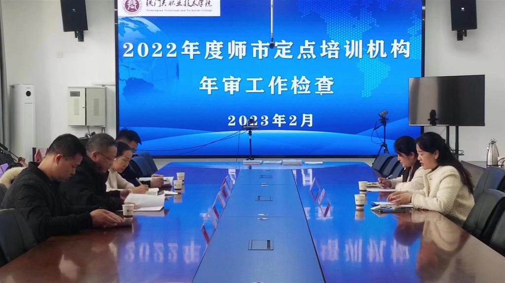 2月7日,第二师铁门关市人力资源和社会保障局侯天生一行赴bat365在线中国官网登录入口,开展2022年度职业技能定点培训机构年审检查工作,学院领导及继续教育与培训部相关业务人员参会。