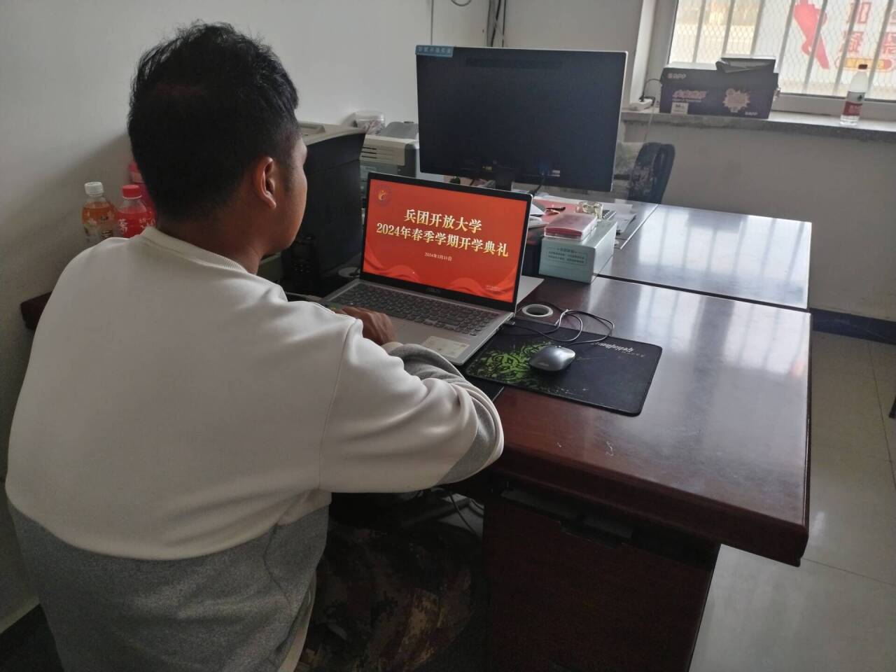 3月31日,新疆生产建设兵团开放大学举行2024年春季开放教育新生开学典礼,该校党委副书记、校长杨淼森出席并致开幕辞。此次开学典礼采取线上与线下相结合的方式进行,共设22个分会场,来自不同岗位、不同年龄的87名二师铁门关市开放大学新生通过电脑或手机参加会议。