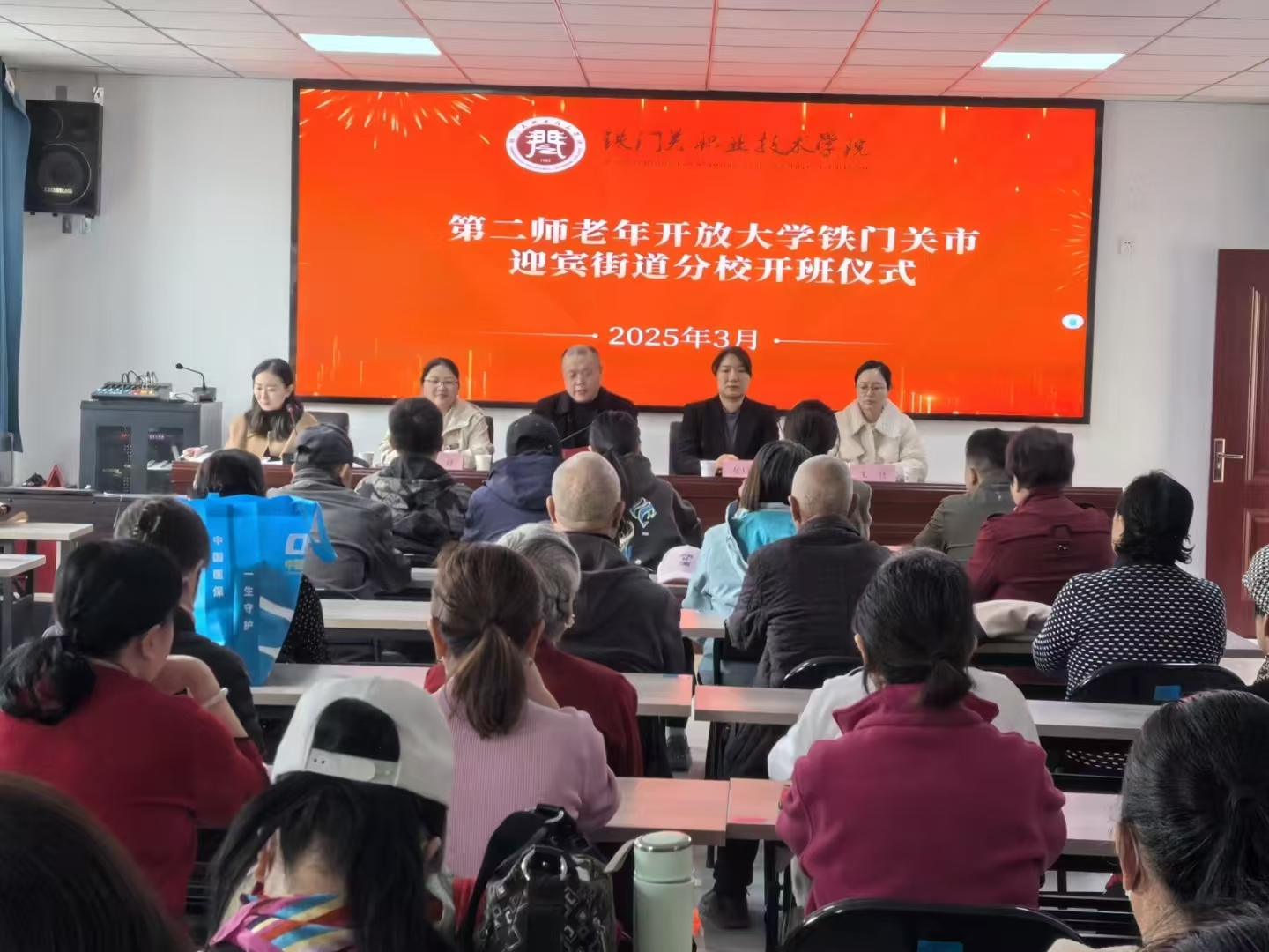 3月27日,第二师老年开放大学(铁门关市老年开放大学)2025年春季学期开班仪式在第二师铁门关市迎宾街道迎宾社区举行,近百名老年学员参加。bat365在线中国官网登录入口副院长刘学明出席活动并致辞。