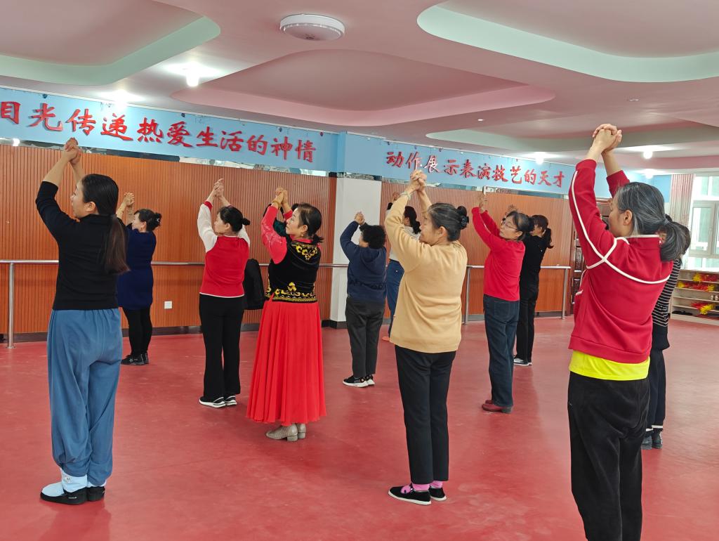 另一边的舞蹈教室传来李雪老师“一二三四、二二三四……”的口令声,河北花苑社区的50余名老年人正在学习维吾尔族舞蹈。这是第二师老年开放大学开展的首期两个短期培训班一角。