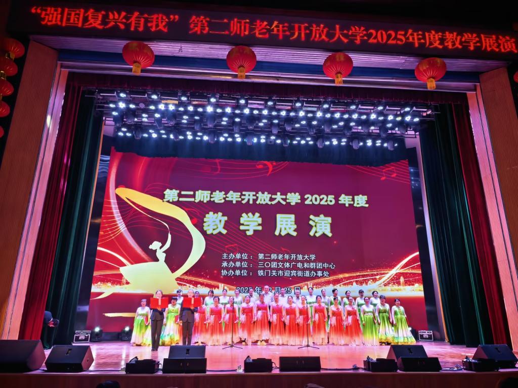 此次结业展演不仅是老年学员们学习成果的集中展示,更是第二师老年开放大学办学理念的生动实践。第二师老年开放大学始终致力于为老年人提供优质的学习平台,丰富老年人的精神文化生活,助力“老有所学、老有所乐、老有所为”的美好愿景落地生根。