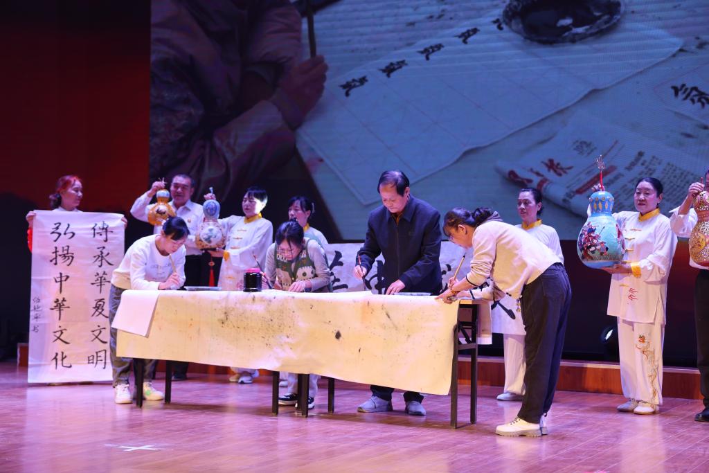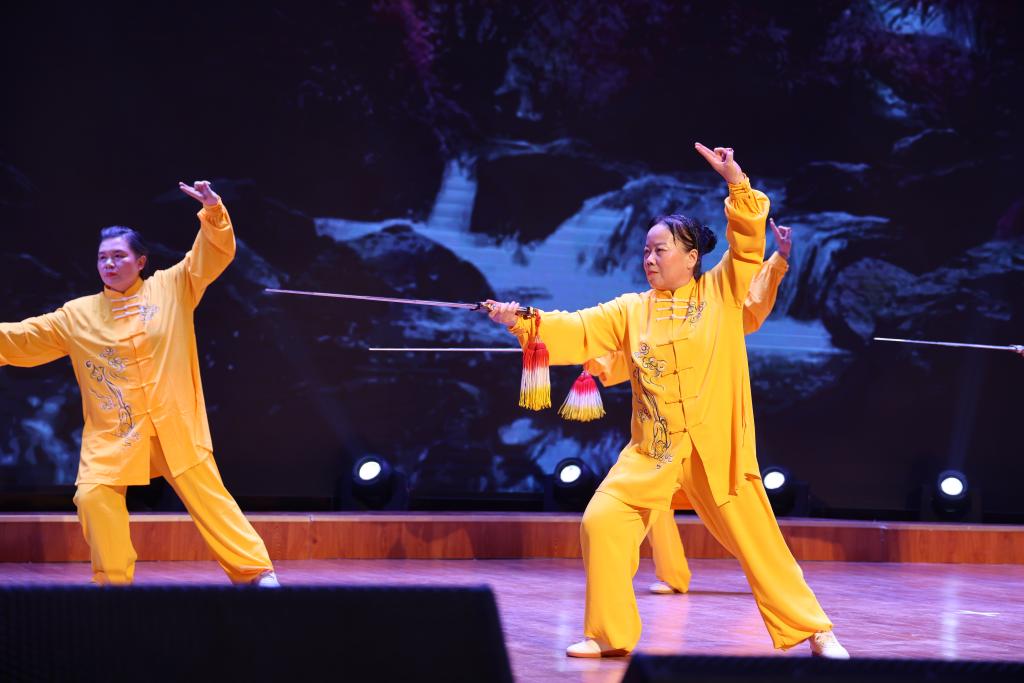 书法展示环节中,学员们现场挥毫泼墨,笔走龙蛇间尽显功底,赢得阵阵掌声;功夫扇《中国功夫》《28式杨式太极扇》刚劲有力,展现了功夫与扇舞的完美融合;太极剑32式、太极柔力球《梦想启航的地方》则展现了老年学员们精湛的技艺与从容的气度;广场舞《快乐健康13步》节奏轻快,充满感染力;合唱《我爱你中国》《走向复兴》《向往》更是将展演推向高潮,合唱队歌声嘹亮、情感真挚,抒发了对祖国的热爱与对美好未来的向往。