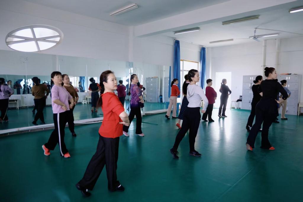 在迎宾社区舞蹈室,悠扬的马头琴声与节奏明快的蒙古族民歌交织回荡。学员们在专业教师的带领下,学习蒙古舞蹈的经典动作。从柔肩、硬腕到奔放的抖肩、驰骋步,学员们虽年过半百,却学得一丝不苟,仿佛置身辽阔草原。