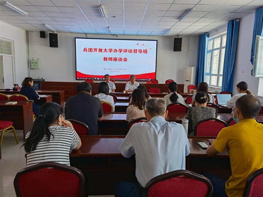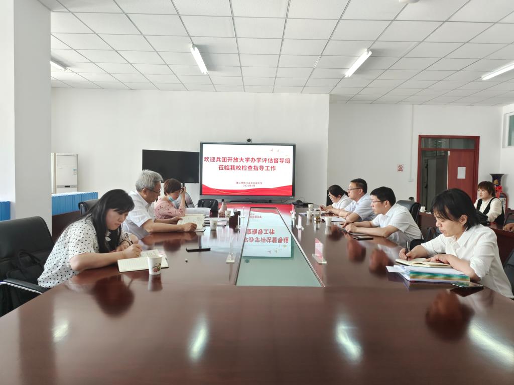 5月18日,兵团开放大学办学评估督导组组长任建军一行到第二师铁门关市开放大学开展仿真评估督导工作。第二师铁门关市教育局督学李贤良、bat365在线中国官网登录入口领导、师市开放大学全体教师参加工作汇报会。