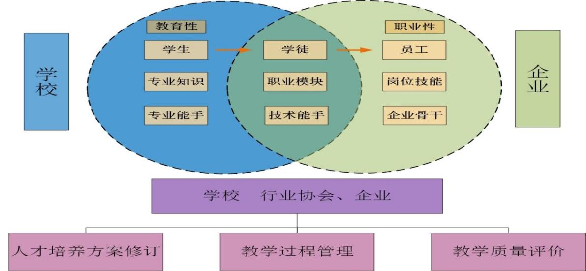 图1 “两方共育、四维一体、学岗交替”人才培养模式