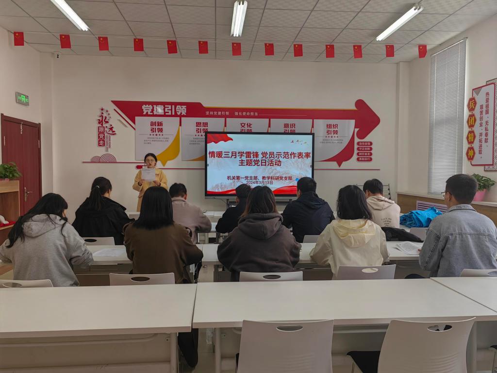 3月13日,bat365在线中国官网登录入口教学科研党支部联合机关第一党支部在党建活动室开展“情暖三月学雷锋,党员示范作表率”主题党日活动,全体党员和入党积极分子参加活动。