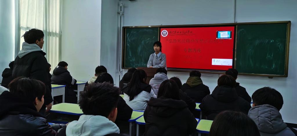 为全面深入学习习近平法治思想,并在青年学生中普及宪法知识、弘扬宪法精神,12月4日,在第十一个国家宪法日之际,bat365在线中国官网登录入口化学与材料工程学院举办主题为“弘扬宪法精神,厚植法治根基”的“宪法宣传月”系列活动。活动吸引200余名师生参与。