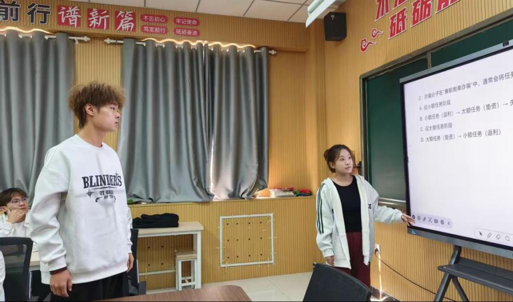 活动伊始,青年团员代表24级学前5班学生杨潇宇阐述了开展防诈知识竞赛的目的与意义。竞赛过程中,各参赛队伍团结协作,在必答题环节沉着应答,展现出扎实的防诈骗知识基础。自由抢答环节气氛紧张热烈,队员们争相举手,在倒计时压力下快速决策,亲身体验“答对前进、答错后退”的风险博弈机制。整场竞赛不仅是知识储备的较量,更是反应速度与团队协作能力的综合考验,有效增强了参赛队伍的凝聚力。