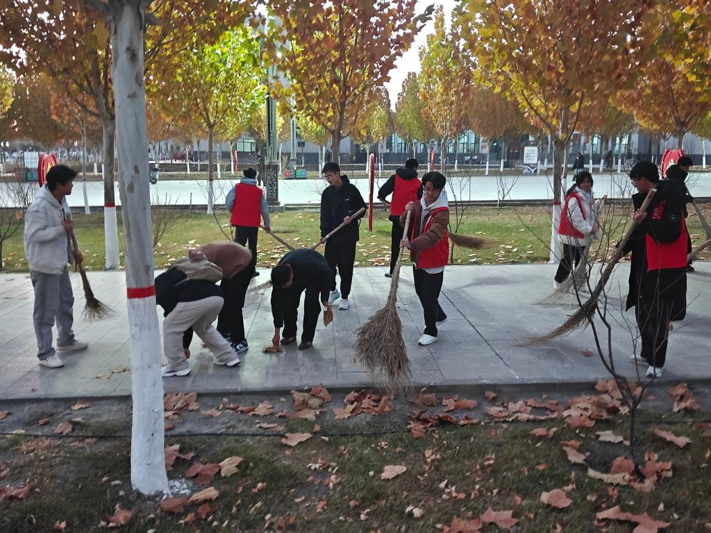次日,党支部组织了志愿服务活动。在教师党员的带领下,一支由学生入党积极分子和入党申请人组成的“绿色先锋”志愿服务队,手持清洁工具,深入实验室、教学楼公共区域及学院绿化带,开展了一场全方位的校园清洁行动。25级化工自动化技术1班学生牛家鑫表示:“维护我们学习和生活的环境卫生,就像对待精密的化学实验一样,需要细心和责任心。”