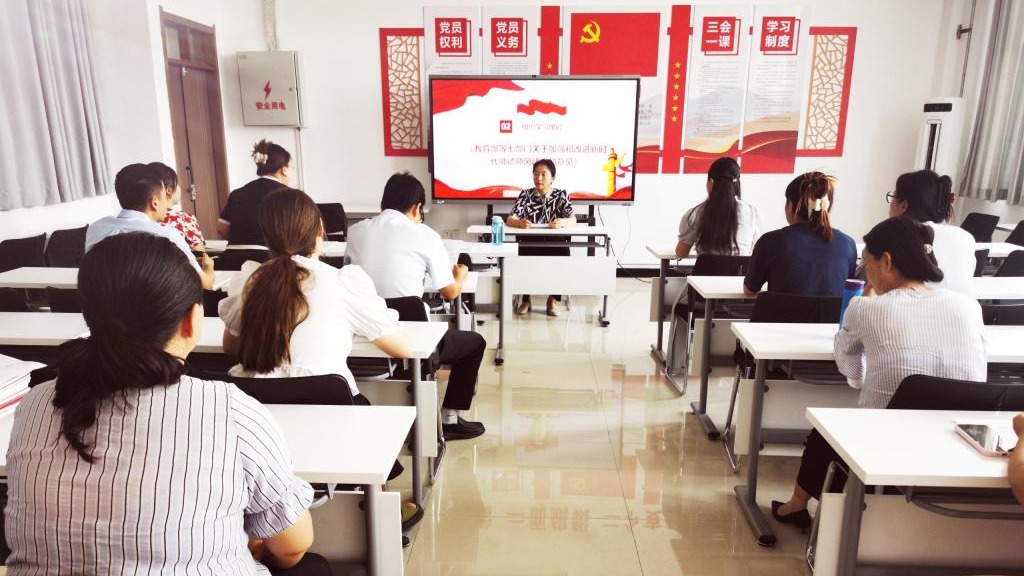 接着,基础教学部党支部书记曲红霞领学《教育部等七部门关于加强和改进新时代师德师风建设的意见》的理论内容,引导教师坚守职业道德,提升教育教学质量,倡导争做“四有”好老师,为学生成长奉献力量。