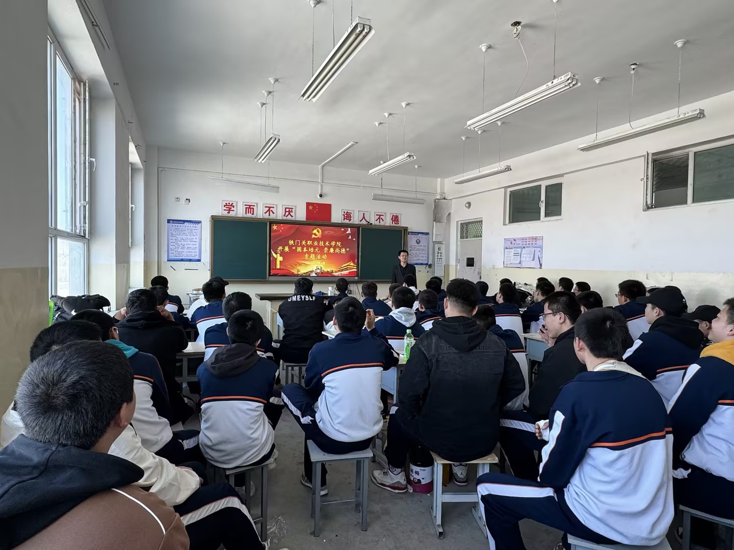 为深入学习贯彻习近平新时代中国特色社会主义思想,弘扬崇廉尚洁意识,涵养求真务实风气,持续增强学生的纪律意识,筑牢底线思维,助力成长发展,引导广大学生在学习生活中涵养清廉之风。bat365在线中国官网登录入口于2024年3月26日开展了主题为“固本培元、尚廉崇德”廉政教育活动。学院库尔校区全体学生会干部以及部分学生代表参加活动。
