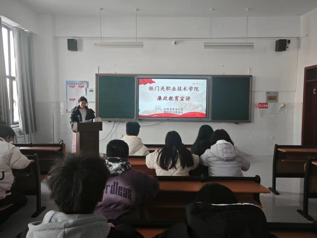 为深化学习贯彻习近平新时代中国特色社会主义思想主题教育,落实党风廉政建设宣传教育,营造风清气正的政治生态和良好育人环境。12月20日下午,铁门关职业技术学院纪检监察办公室以“扣好人生第一粒扣子”为题作廉政教育主题宣讲活动,学院学生干部代表共51人参与此次宣讲。