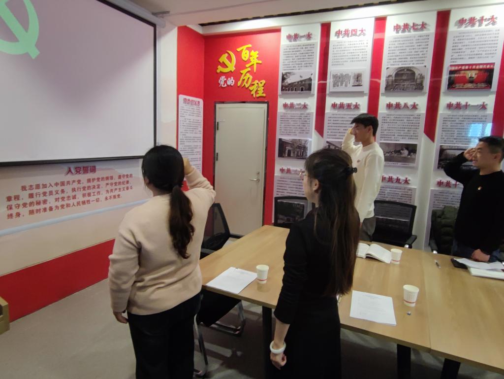 “我志愿加入中国共产党……随时准备为党和人民牺牲一切,永不叛党。”在学工党支部书记的带领下,党员们面向鲜红的党旗,重温入党誓词,牢记入党初心使命,进一步增强党员意识,永葆共产党员的先进性。