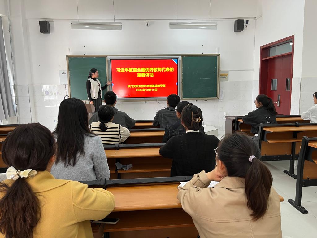 向典型看齐,向榜样学习。基础教学部教师在今后的教学工作中,要用心、用情、用爱担负起新时代铸魂育人的职责使命,用实干诠释初心,以奋斗践行使命,将坚持不懈的精神落实到每次教学中。