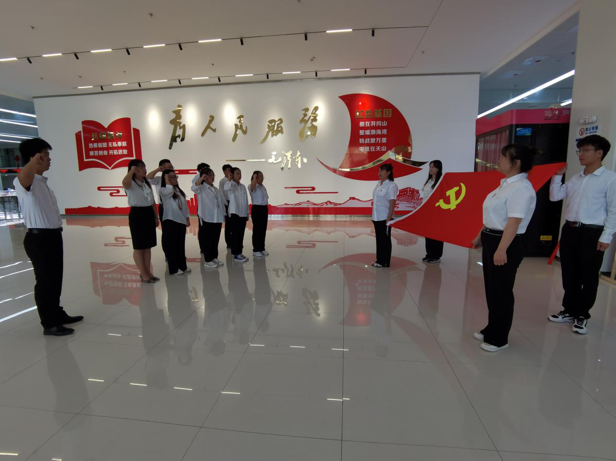 活动中,党支部全体党员重温入党誓词、学习诵读党章、组织理论学习。随后,在解说员的带领下,全体党支部同志共同参观铁门关市城市规划沙盘,观看“铁门关市发展史”纪录片,使党员同志们体会到现在美好生活的来之不易,深深领悟到革命先辈们的艰苦奋斗精神。全体党员还参观和了解了市民中心的业务办理窗口、第二师铁门关市数字政务运营指挥中心、铁门关市城市管理操作系统。