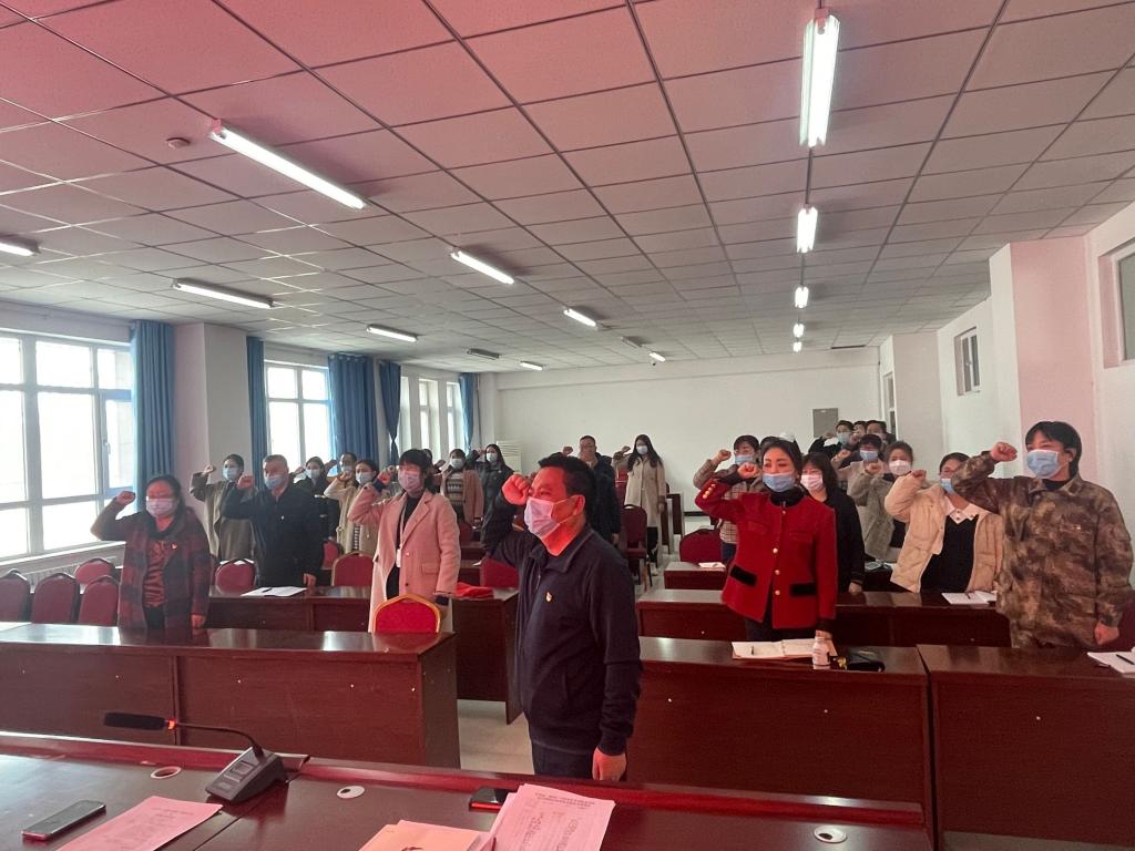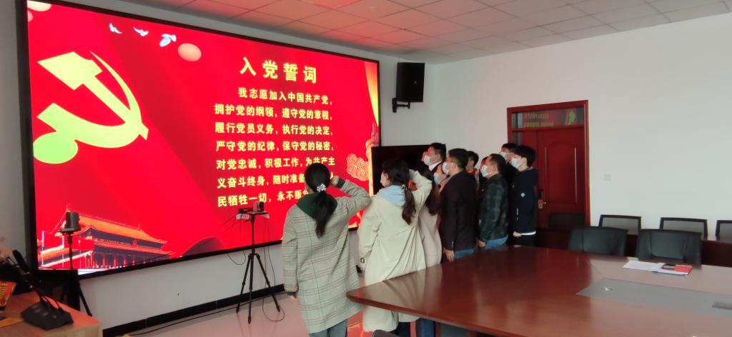“我志愿加入中国共产党,拥护党的纲领,遵守党的章程……”面对鲜红的党旗,全体党员庄严的举起右手,在铿锵有力的宣誓中重温入党时的初心、信念,鞭策自己恪守承诺、砥砺前行。
