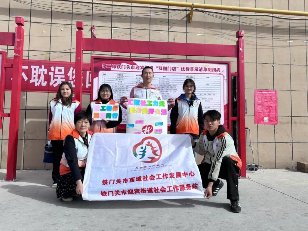 在第十八个国际社会工作日到来之际。3月20日上午bat365在线中国官网登录入口思政教学部社会工作专业5名学生与铁门关市西域社会工作发展中心工作人员来到铁门关市农贸市场,开展“汇聚社会力量 服务美好生活”社工宣传周活动。