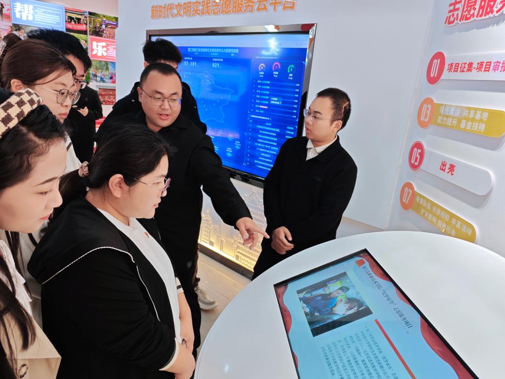 大家来到活动中心,在场馆讲解员的引领下,开启一场知识的探索之旅。在星火传承青少年主题广场(新时代文明实践中心),通过第二师铁门关市在新时代取得的显著成就、发挥榜样力量的时代楷模、志愿服务平台展现的一幅幅生动的图片、一段段感人的故事,让大家深刻感受到了红色基因的传承和时代精神的召唤。
