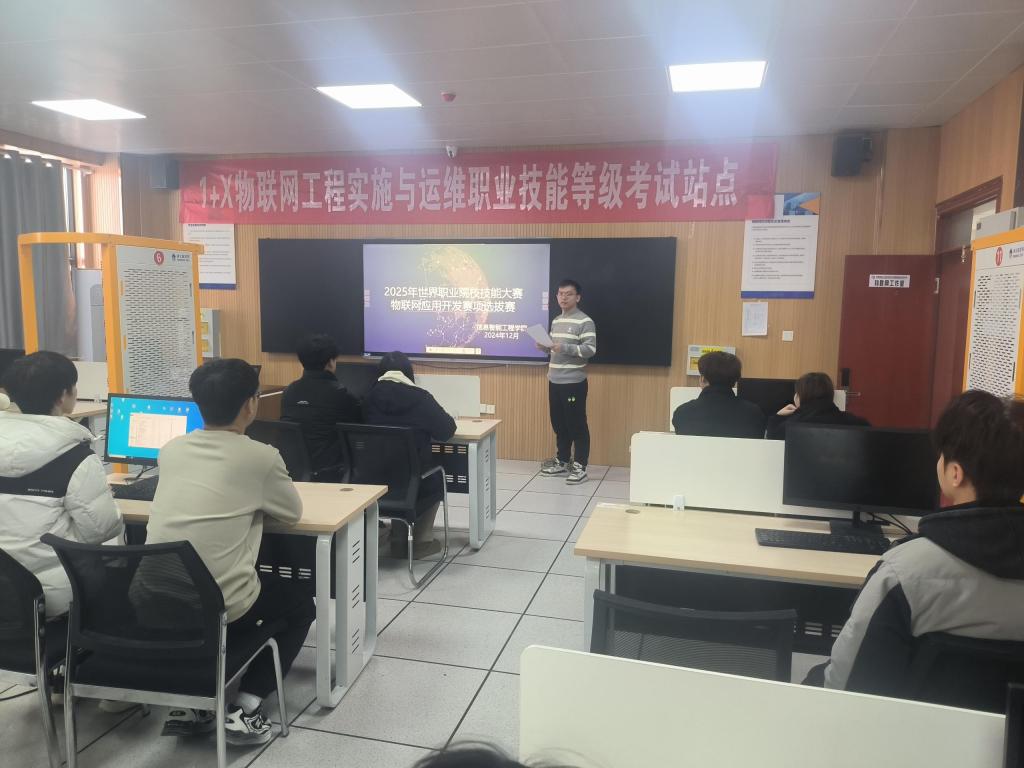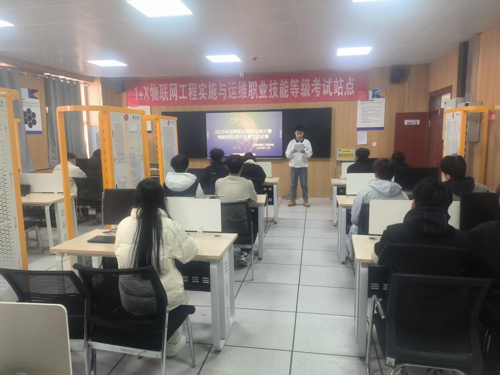 12月25日,bat365在线中国官网登录入口信息智能工程学院党支部以“党建+大赛”为抓手,组织开展了2025 年世界技能大赛物联网应用开发赛项校内选拔赛,共有25名物联网专业的学生参与,一场技能与智慧碰撞的盛宴在校内激烈上演。