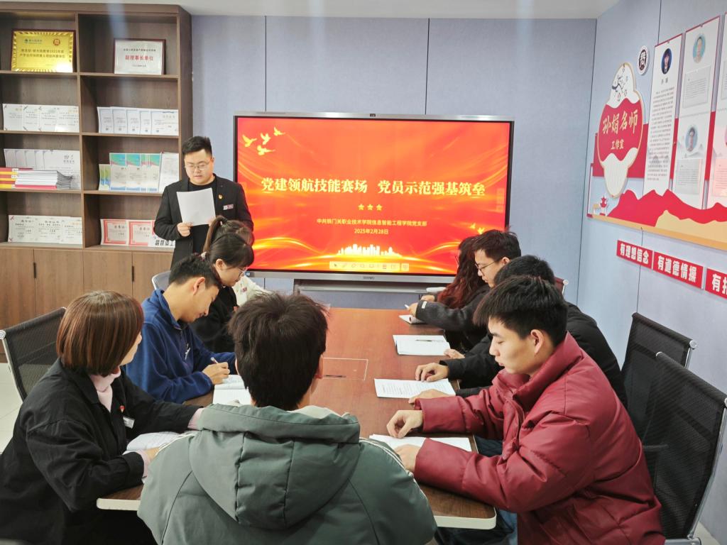 2月28日,bat365在线中国官网登录入口信息智能工程学院党支部在德润楼孙娟名师工作室开展 “党建领航技能赛场,党员示范强基筑垒” 主题党日活动,旨在强化党建引领,提升党员教师在技能教育领域的示范带头作用,推动学院教育教学工作迈向新高度。