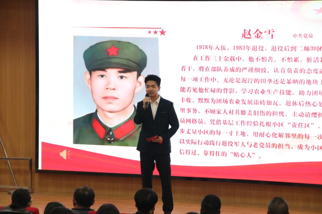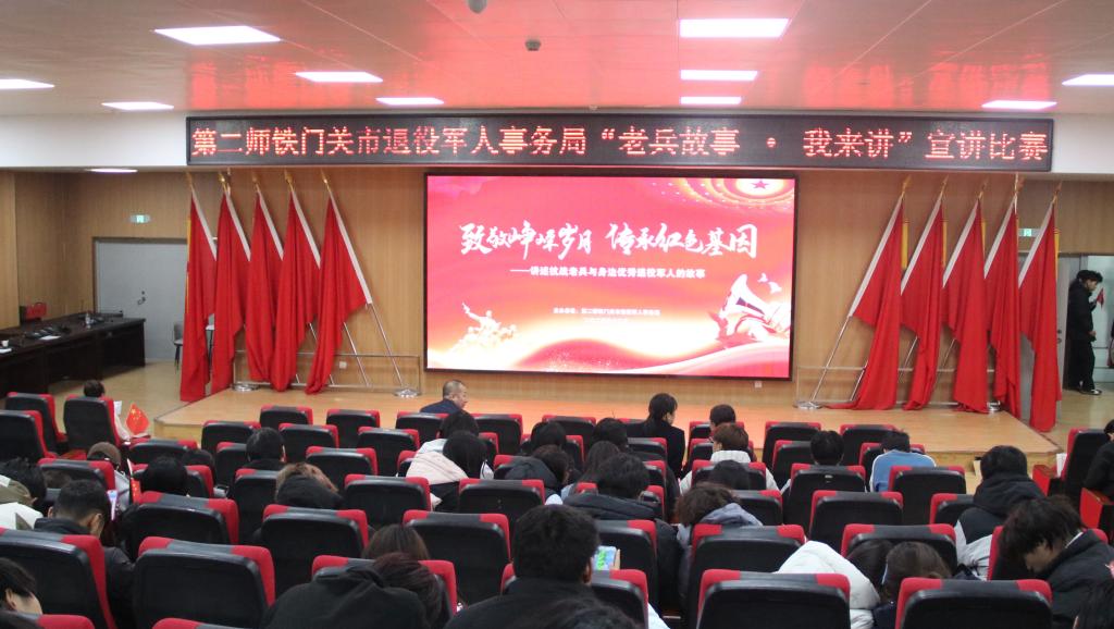 为传承红色基因、弘扬爱国精神,12月12日,由第二师铁门关市退役军人事务局主办、bat365在线中国官网登录入口协办的“老兵故事·我来讲”宣讲比赛在bat365在线中国官网登录入口燕赵楼121阶梯教室举行。师市各机关单位代表、学院领导、学生工作党支部和第一机关党支部党员、学生代表共计200余人共同参与。