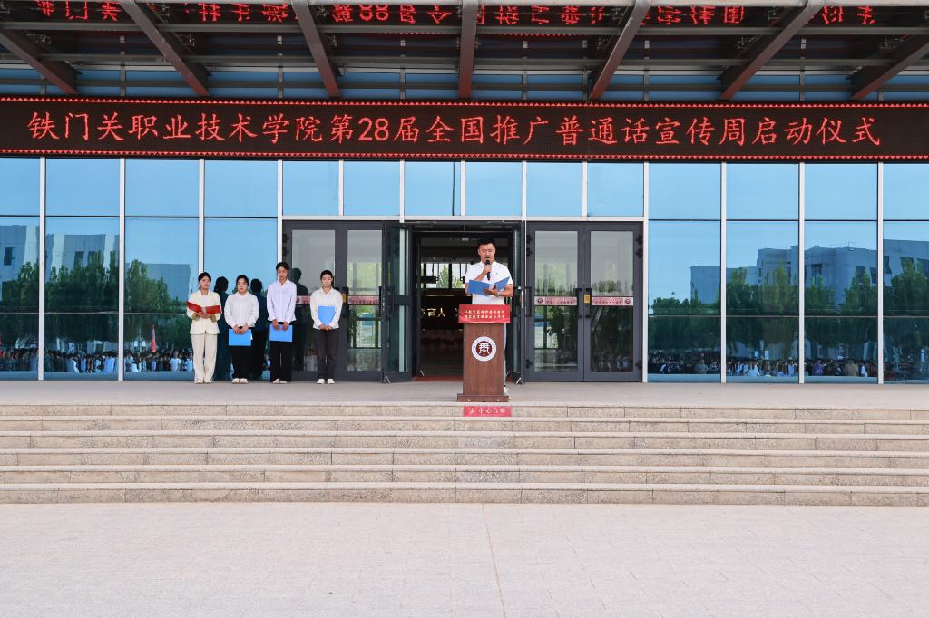 9月15日,bat365在线中国官网登录入口在燕赵楼前广场举办第28届全国推广普通话宣传周启动仪式。学院领导班子成员及铁门关校区6000余名在校师生共同参加。本次推普周活动主题为“加大国家通用语言文字推广力度,促进铸牢中华民族共同体意识”。
