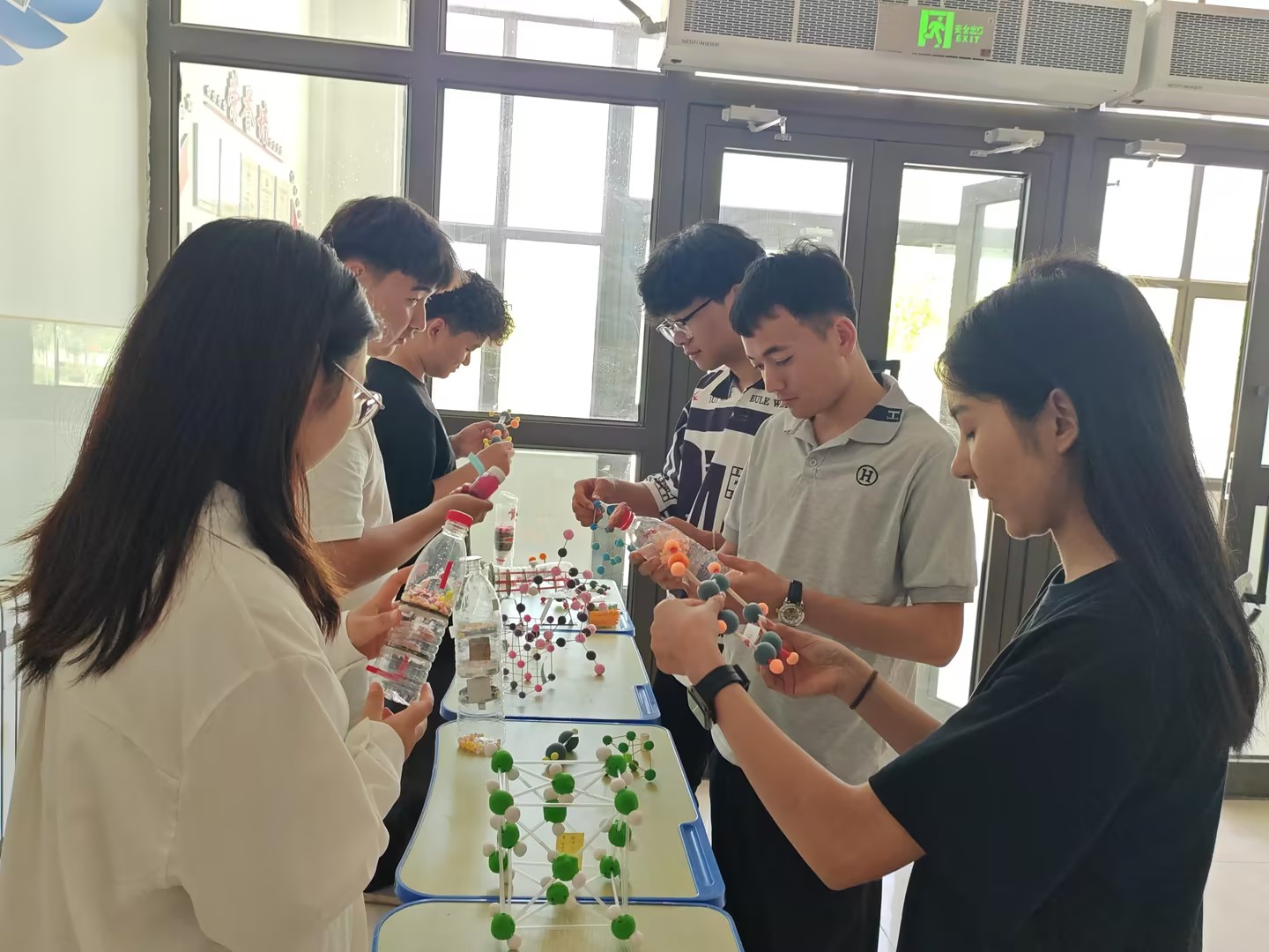 5月12日至13日,在精技楼化学工程实训中心303教室,该系专业教师指导学生们结合专业特性动手制作化工模型。油气储运技术专业的同学动手制作出一个小型加气站;化工智能制造技术专业的同学制作出现代化的小型化工厂模型;分析检验技术专业的同学利用粘土制作出不同物质的晶胞模型;应用化工技术专业的同学制作了精馏塔、吸收塔、换热器等多种化工设备模型。通过这些手工实践,让同学们对自己专业有了更深的认识,同时在展示交流环节,也加深了对其他专业的了解。