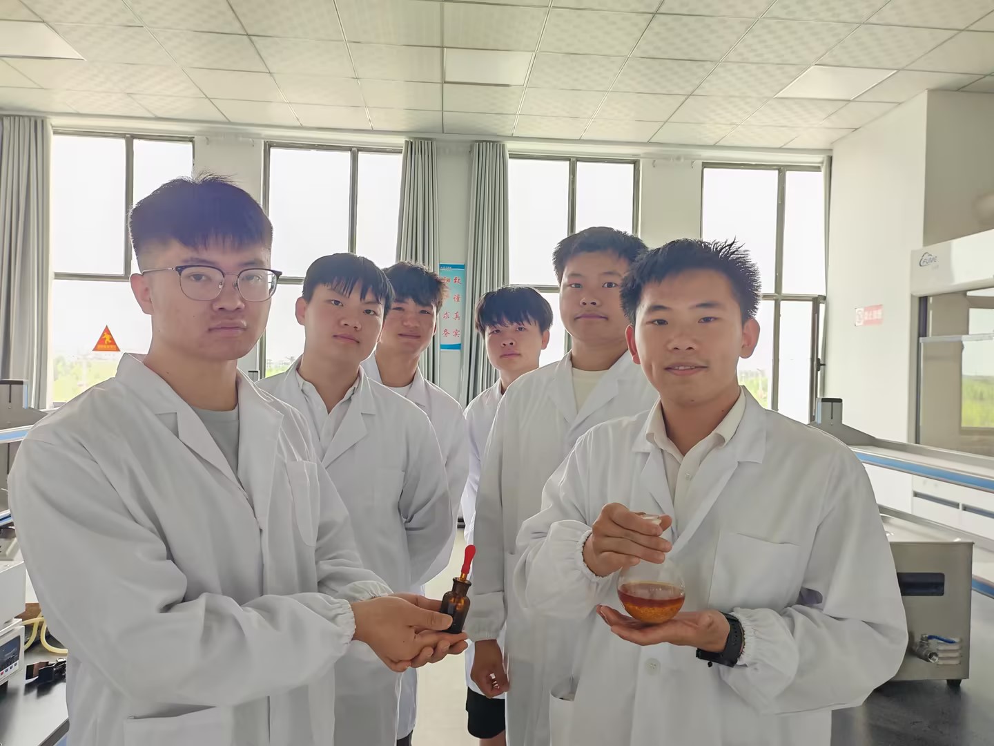 22级应用化工技术1班学生何山同学说:“虽然实验过程中遇到了一些困难,但是我们一起查阅资料并向老师请教,在大家共同努力下,还是成功制备出了橘子精油,我会将自己制备的精油保存好,和父母及朋友分享这份喜悦。”