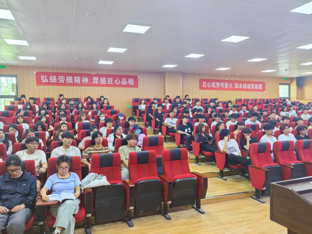 活动在学院阶梯教室展开。全国技术能手肖乾亮以视频展播形式展示数控领域十余项创新成果,重点解析精密加工技术突破行业瓶颈的典型案例。其《匠心铸就非凡》主题讲座中,结合“高铁齿轮箱精密制造”等实践案例,阐释“执着专注、精益求精”的工匠精神内核,强调“0.01毫米的精度坚守是大国制造的重要基石”。