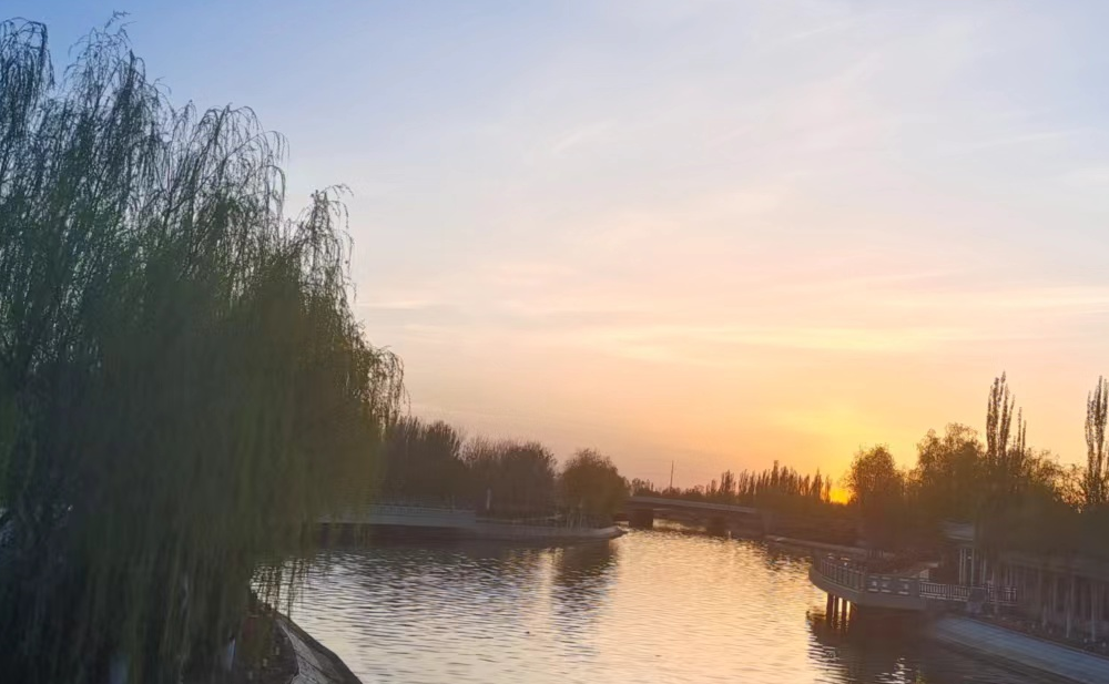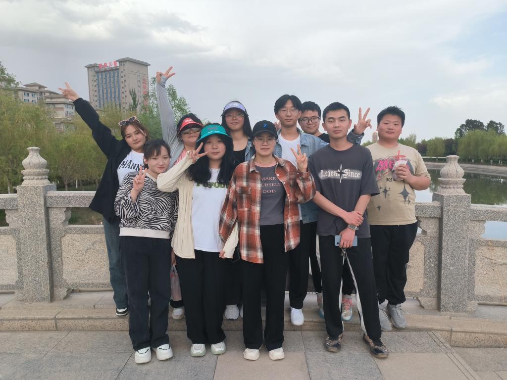 当天下午参加团建活动的老师和学生在校门口集合点名后便出发了。此次出行是步行前往,沿着学院门口的将军河一路向东行走,一路上他一言你一语充满了欢声笑语,途中,老师组织学生拍摄沿途风光,让学生互相分享自己视角中最美的光影,并用一句诗句进行描绘,其中张帆同学吟诵道:“大漠孤烟直,长河落日圆”;刘仕泽也感慨道:“两竿落日溪桥上,半缕轻烟柳影中”。