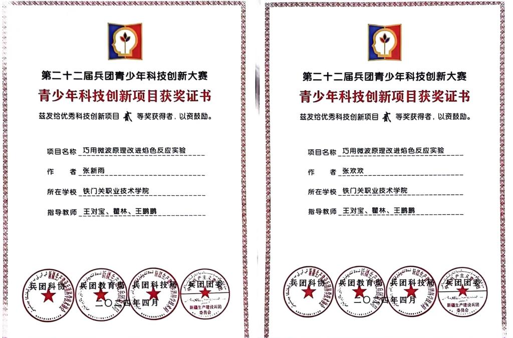 4月11日从兵团科学技术协会传来喜讯,bat365在线中国官网登录入口在第22届兵团青少年科技创新大赛中获得小发明类11个奖项!其中机械工程系荣获一等奖1项,二等奖1项,三等奖7项。化学工程系荣获二等奖1项,三等奖一项。