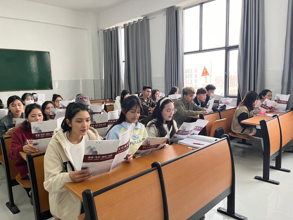 此次活动将学院语言文字工作委员会编制的《中华经典诵读》校园读本作为阅读内容,在《大学语文》及《国家通用语言》课堂上,让学生利用课前5分钟时间,朗诵其中的精彩诗词、经典语录。同时,语文教师结合课堂教学,讲述其中蕴含的人生哲理,让学生更全面地体会经典、认识经典、诵读经典。