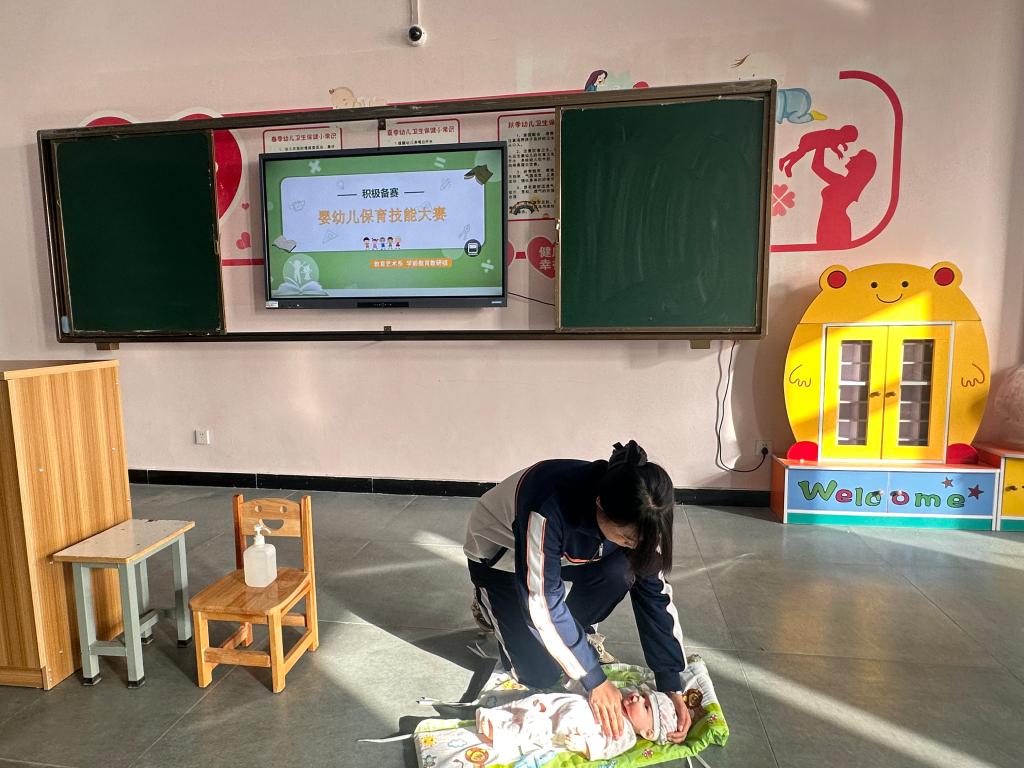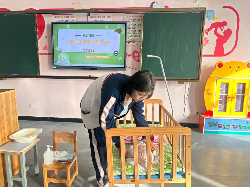 婴幼儿保育赛项是今年自治区职业院校技能大赛新增赛项,首次纳入国赛体系。该赛项内容包括生活照护、安全照护、故事讲述和韵律活动组织,涉及到职业素养测评、婴幼儿保育技能实操、婴幼儿早期学习支持三大领域。学院教育艺术系对标国赛标准,设立了婴幼儿保育赛项备赛小组,协调两校区教师对小组成员进行针对性授课指导,备赛内容设置充分对接幼儿园保育岗位任务、对标国家专业教学标准,在新赛道上迎接新挑战。