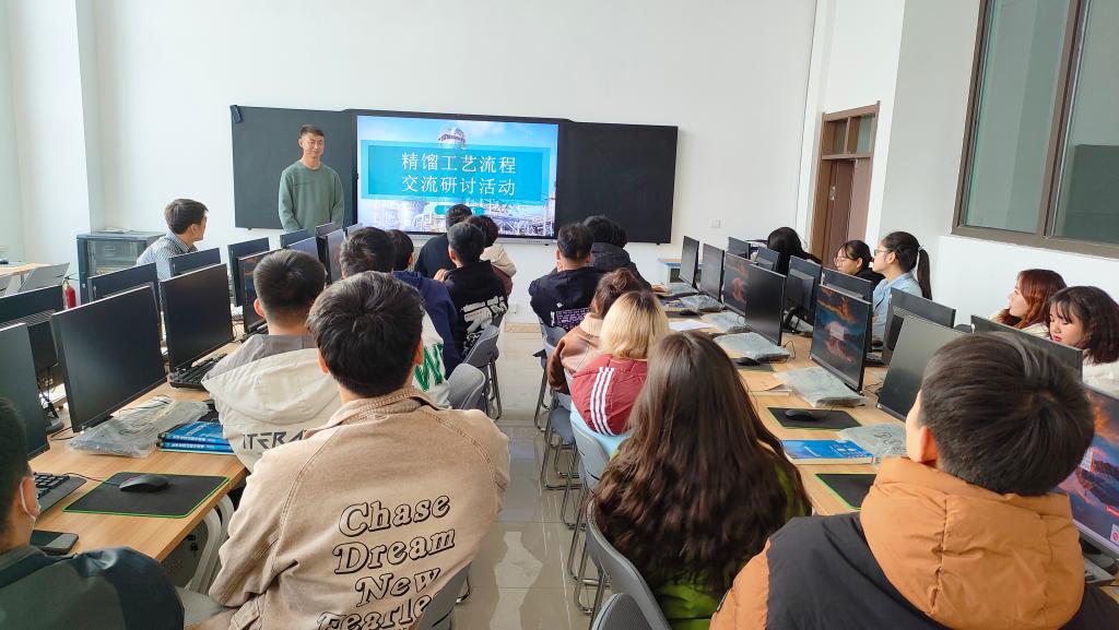 为丰富学生在化工工艺流程方面的专业知识,锻炼学生对于化工生产过程的独立思考能力,11月20日,bat365在线中国官网登录入口化学工程系组织学生在化工楼仿真实训室举办关于精馏工艺流程的交流研讨活动。该系具备职业技能大赛指导经验的教师及应用化工技术和化工智能制造技术专业的部分学生参与活动。