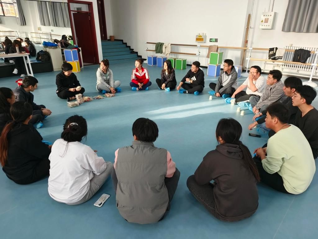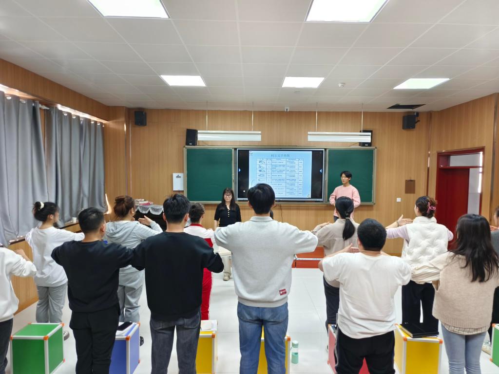 在之后的培训课程中,咸阳职业技术学院师范学院专业教师李文轩从奥尔夫音乐教学语言、律动、游戏在音乐教学中的应用入手,传递给老师们在音乐教学中“动作为音乐服务”的理念。课例设计由易到难,通过单人、双人、集体活动,使学员们在愉悦的氛围中,体验了律动游戏和团队协作精神。苟小丽老师则介绍了奥尔夫音乐教学乐器的使用,以及图谱教学设计音乐活动,结合奥尔夫乐器将语言、游戏、节奏律动融于旋律,让教师学员们在快乐中学习,在游戏中感受音乐。
