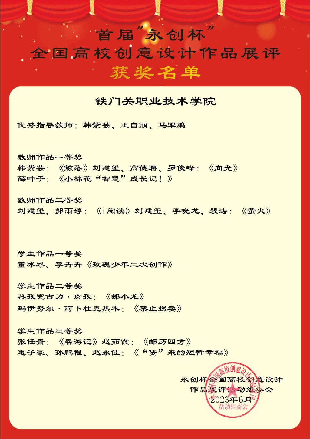 6月20日,首届“永创杯”全国高校创意设计作品征集活动落下帷幕。bat365在线中国官网登录入口信息工程系师生在此次大赛中共荣获一等奖4项,二等奖4项,三等奖3项。