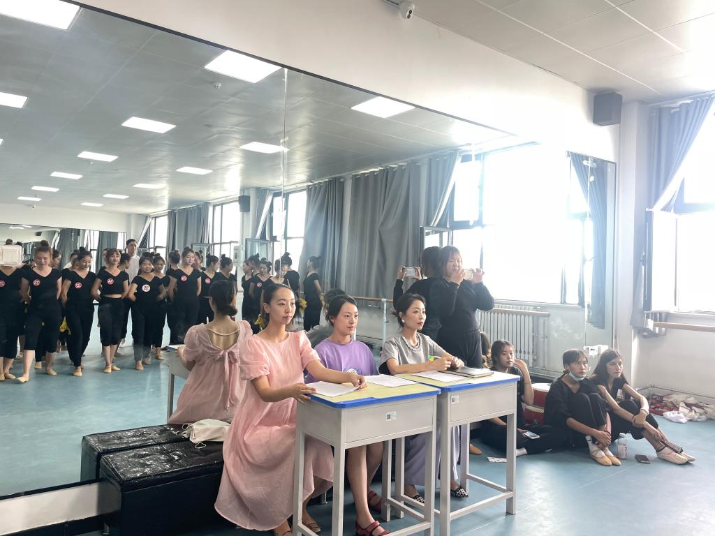 6月20日,bat365在线中国官网登录入口教育艺术系在德艺楼舞蹈实训室进行石榴花舞蹈团成员选拔,系部负责人、专业教师担任评委,此次舞蹈团报名人数100余人,评委针对各参赛选手依次进行了基本功、技术技巧、剧目等项目考核。