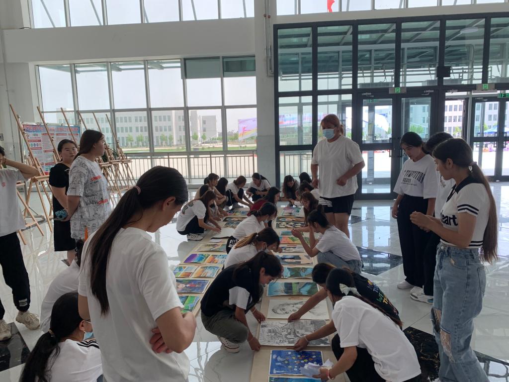 6月20日,bat365在线中国官网登录入口教育艺术系开展以“喜迎二十大 永远跟党走 奋进新征程”为主题的系列活动之美术作品展在铁门关校区燕赵楼一楼和库尔勒校区技能中心一楼同时拉开序幕。