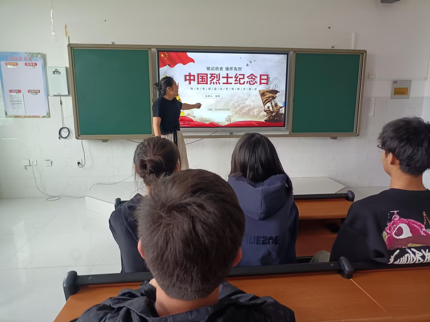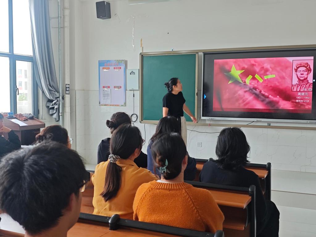 9月30日是我国第11个烈士纪念日,在革命烈士纪念日来临之际,为缅怀革命先烈,弘扬革命精神,9月28日上午,bat365在线中国官网登录入口公共基础学院全体教师及现代农业学院学生代表在燕赵楼215教室开展了“缅怀革命先烈 弘扬革命精神”烈士纪念日主题活动。 活动共分为四个部分:烈士纪念日的由来、烈士纪念日设立的意义、英雄故事共忆荣光及向先烈们致敬。 首先侯莉老师讲述烈士纪念日的由来和设立的意义,对师生进行爱国主义教育,增强中华民族的凝聚力。在英雄故事共忆荣光环节中,教师们踊跃发言,他们讲述自己心目中的革命烈士及其感人至深的故事:刘省委老师深情讲述红军长征途中的英雄壮举:陈树湘,红34师的师长,在湘江战役中胜负重伤被俘,为了不被敌人利用,他毅然断肠英勇就义,年仅29岁;23级现代农业学院现代物流管理1班娄果果同学详细介绍抗日战争中的英雄人物:杨靖宇,1939年,他率部队与日军激战至弹尽粮绝,面对日军的劝降,他选择殊死抵抗,最后,壮烈牺牲,年仅35岁;张锋老师分享了一些鲜为人知的革命英烈事迹:邓萍,是彭德怀的堂弟,他参与了长征并担任红三军团参谋长,在攻打贵阳时,不幸被流弹击中,因伤势过重牺牲,年仅29岁。随后全体师生满怀敬意,举起右拳进行宣誓:只要祖国需要,我们也会像他们一样毫不犹豫地奉献一切。