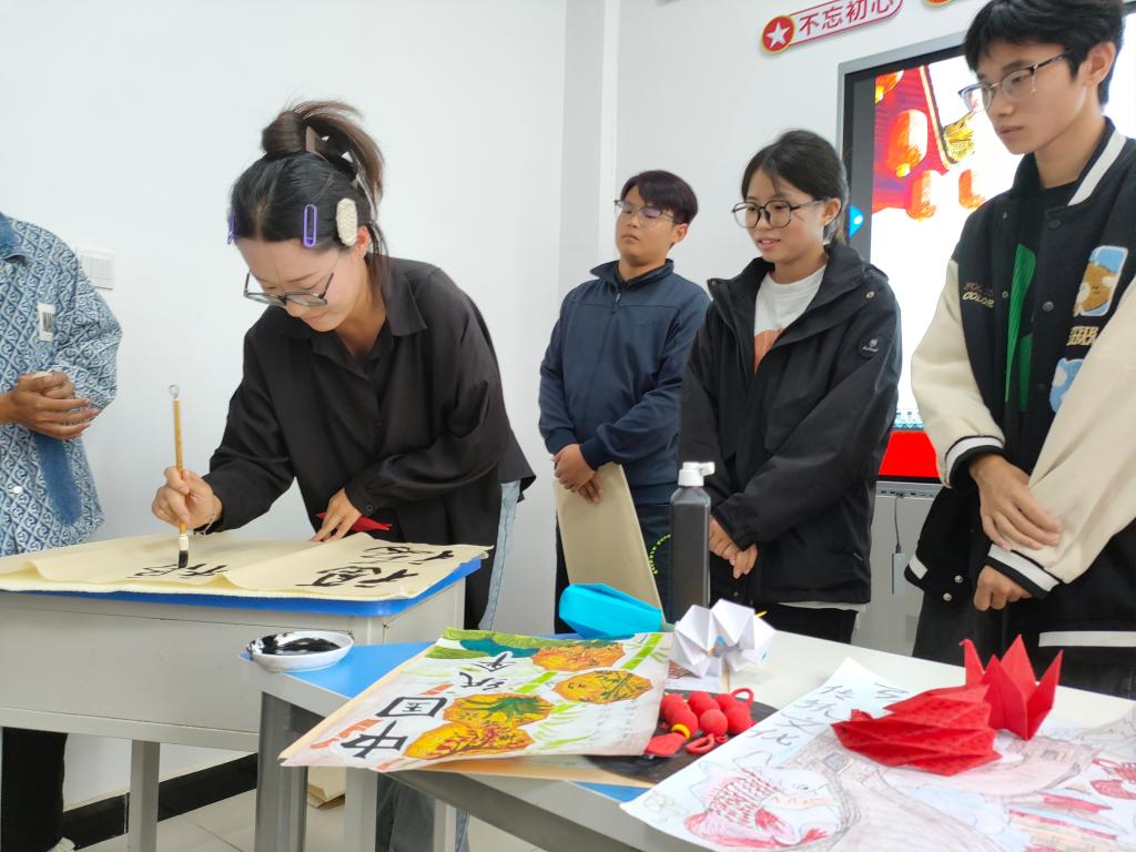 互动体验环节,2023级油储技术1班霍浩然现场演示了书法的魅力,大家纷纷拿起毛笔,亲身体验书写的乐趣。活动现场还设置了传统文化知识问答环节。
