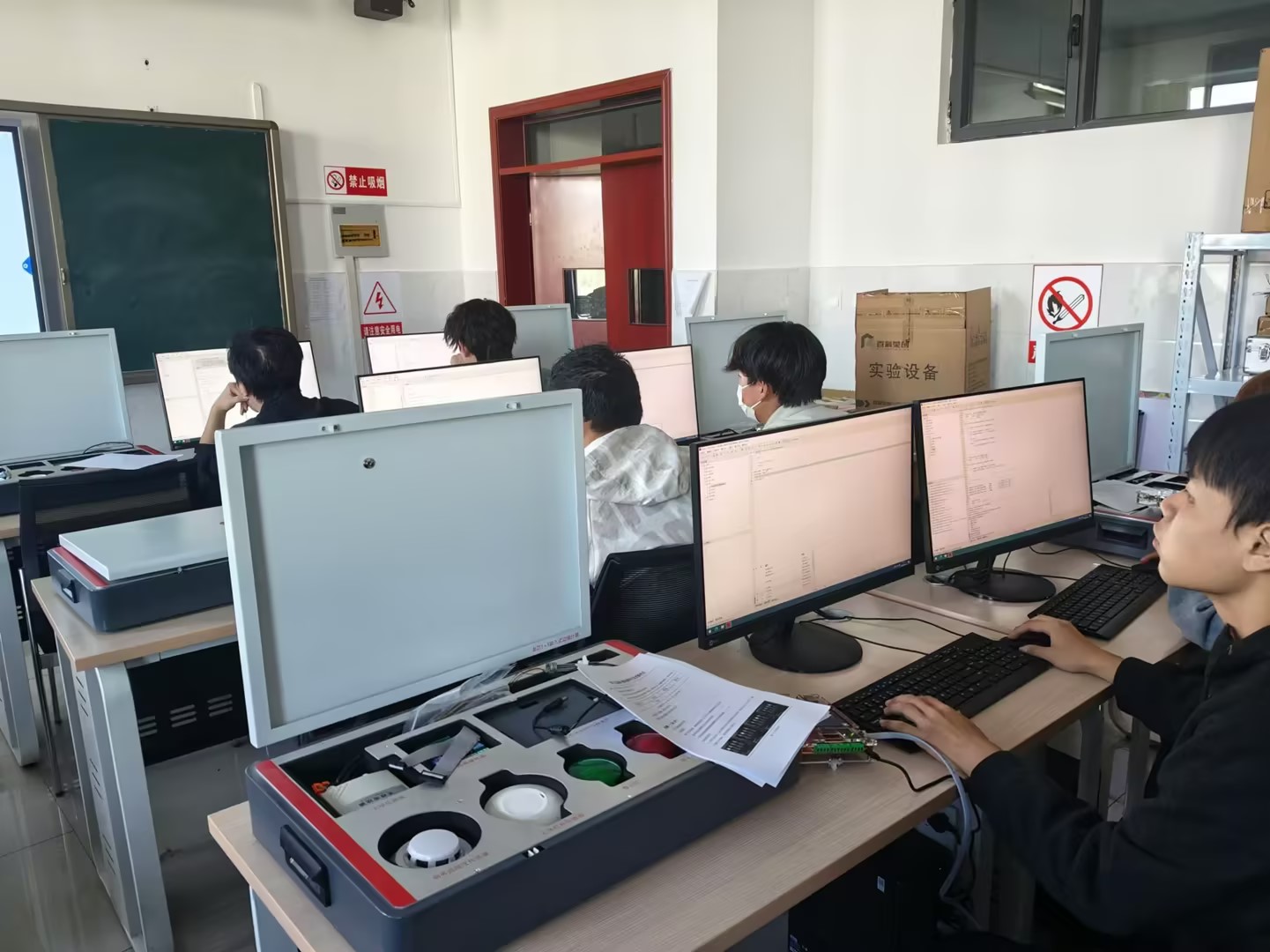 此次认证考试内容由理论考核和实操考核两部分组成,主要面向助理研发、测试等职业岗位,完成环境搭建、功能验证、安装调试、应用集成等方面进行测试,全面考查物联网专业群相关专业学生的理论素养和实操能力。bat365在线中国官网登录入口作为嵌入式边缘计算软硬件开发“1+X”职业技能等级证书的全国试点院校之一,信息智能工程学院工作人员严格按照认证流程精心组织本次考试,考试合格者将获得由龙芯中科颁发的嵌入式边缘计算软硬件开发职业技能等级证书。