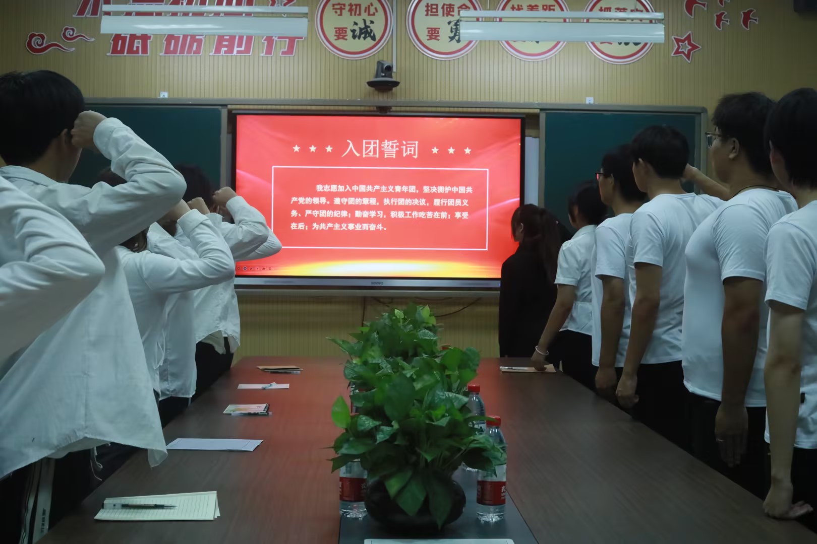活动最后,全体团员高举右手,紧握拳头,庄严宣誓。