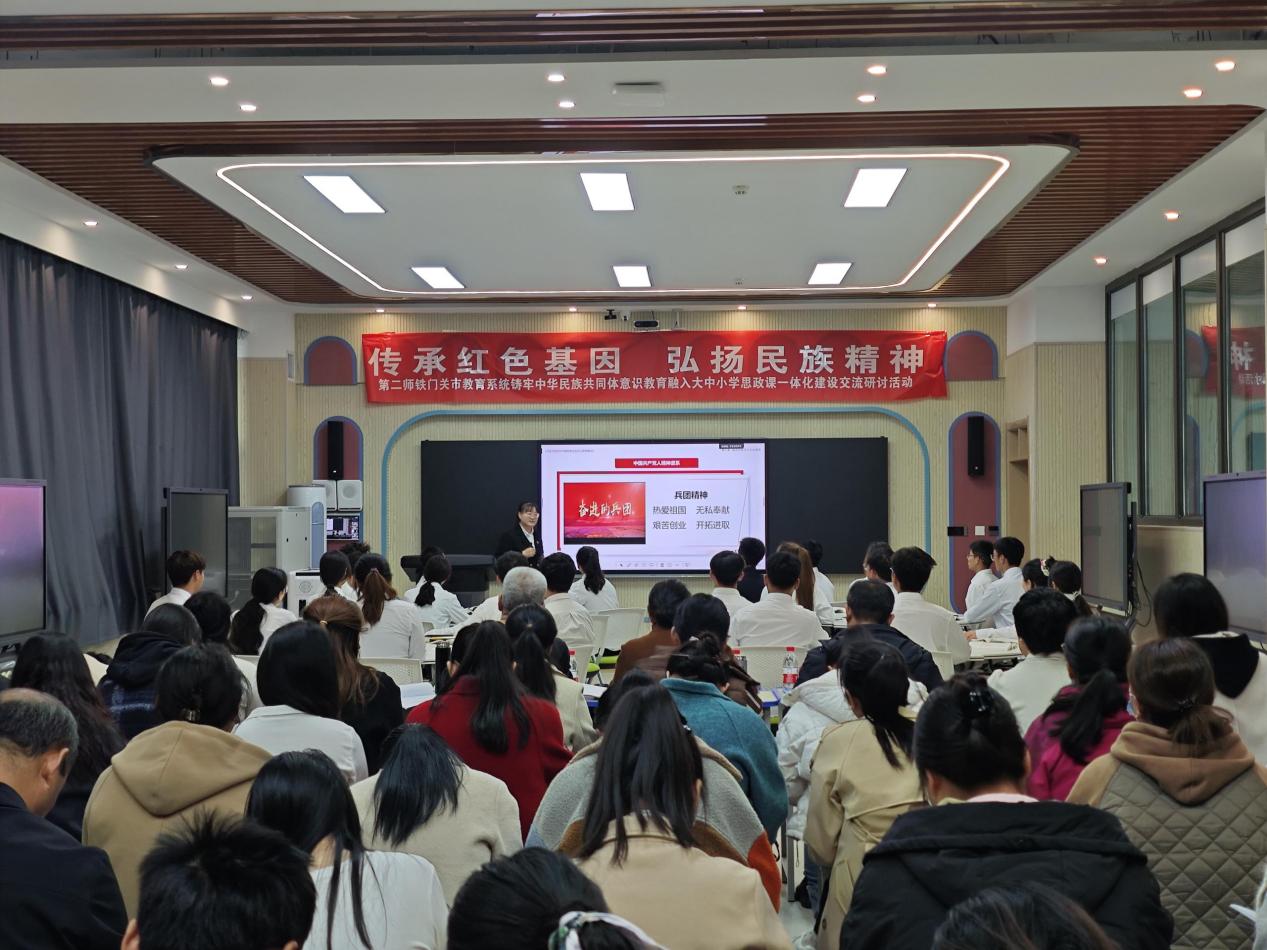 为深入学习全国教育大会精神,全面贯彻习近平总书记关于推进大中小学思想政治教育一体化建设的重要指示精神。11月8日-9日,由第二师铁门关市教育局主办的师市教育系统铸牢中华民族共同体意识教育融入大中小学思政课一体化建设交流研讨活动火热展开。11月9日,师属中小学的60余名政治、历史学科教师齐聚bat365在线中国官网登录入口开展交流研讨活动。